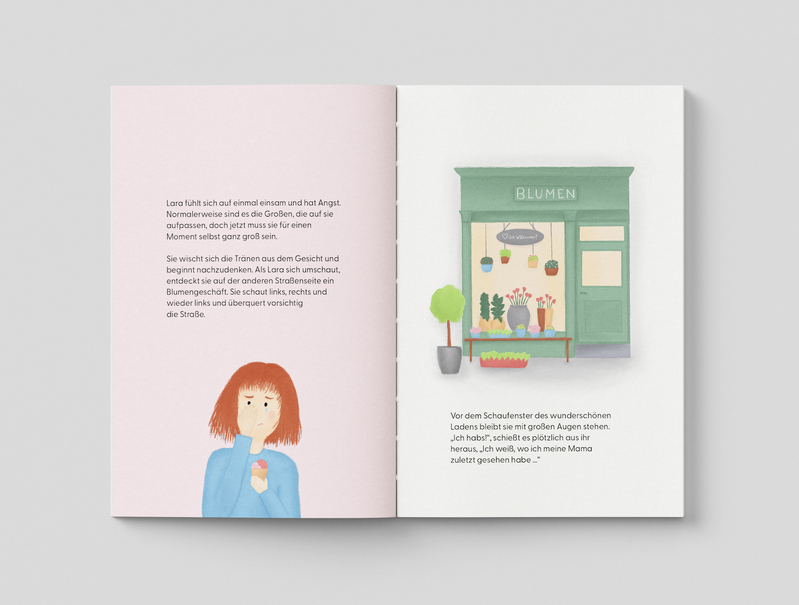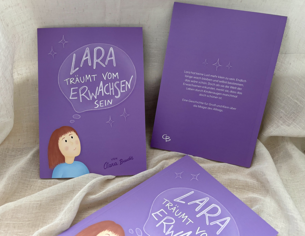Das Kinderbuch mit dem Titel „Lara träumt vom Erwachsen sein“ erzählt auf 30 Seiten eine Geschichte für Eltern und ihre Kinder. Dabei stehen große Illustrationen im Vordergrund, die den Inhalt der Geschichte visualisieren. Der Anspruch war außerdem, dass eine gute Lesbarkeit durch entsprechende Sprache, als auch Layout ermöglicht wird.